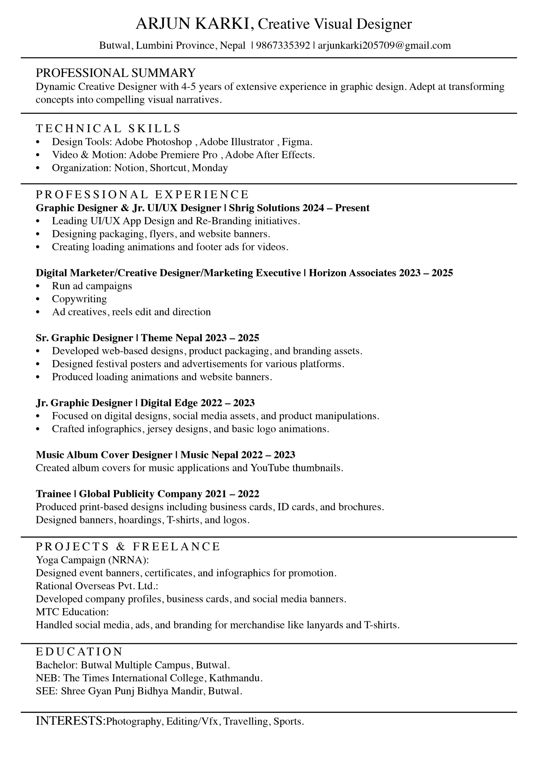 Creative Visual Designer Butwal, Lumbini Province, Nepal | 9867335392 | arjunkarki205709@gmail.com [Behance] | [Website]